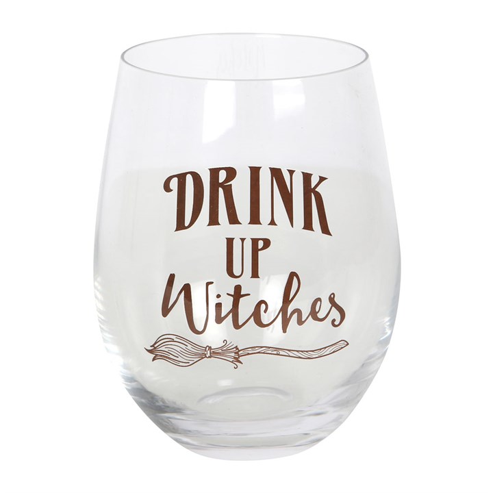 Perk up your next coven meeting or girls’ night in with this fun stemless glass that’s perfect for wine, gin or other potions and tonics. Features a whimsical broomstick illustration with ‘Drink up witches’ text. 500ml capacity. Hand wash only.