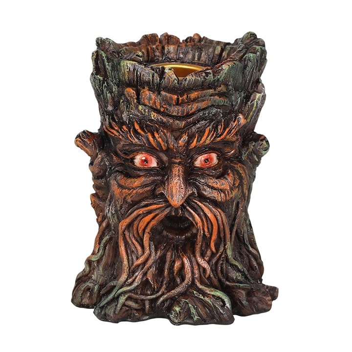 An intricate backflow incense burner in a Green Man design. When the cone is lit the smoke from the cone cascades downwards in a mesmerising waterfall effect to pool at the bottom. Beautiful to watch. For best effects burn indoors in an area away from any sudden air movements. Please note that after burning it is normal for a light oily residue to appear on the oil burner, for this reason we recommend protecting any furniture it is placed upon suitably. The residue can be easily wiped off the burner with a damp cloth. Please exercise caution when burning incense. Only backflow incense cones should be used with this product, standard incense cones will not create the desired effect. It is normal for cones to take up to 10 minutes after being lit to start creating the smoking/mist effect.